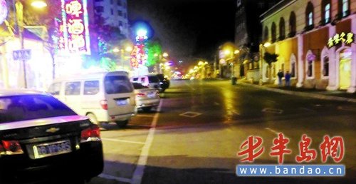 凌晨0时,登州路啤酒街上仍停放着不少私家车。