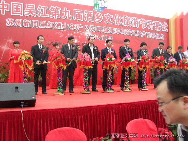 11月8日,由江苏吴江市人民政府主办,吴江市桃源镇政府、吴江旅游局、吴江文广新局承办,中国食品科学技术学会黄酒学会支持的江苏吴江第九届酒乡文化旅节开幕。同时,举行了苏州新同里红酒业有限公司年产2万千升新车间竣工投产剪彩仪式。 桃源镇是江苏著名的酒乡,拥有30多家酒厂,年产黄酒10万千升,规模大、品牌响的骨干企业有苏州新同里红酒业、苏州三洋界文章来源华夏酒报酒业、苏州百花漾酒业等酒企。目前,桃源镇的酿酒产业在当地政府的大力支持下,已初步形成规模产业。
