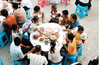 末了,乡亲们在一片客气的“吃饱了吗”、“再来戏”(“再来做客”的意思)的问候中散席。