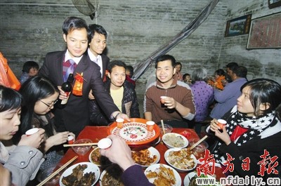 不少网友认为结婚摆酒席是一种传统习俗。记者李细华摄