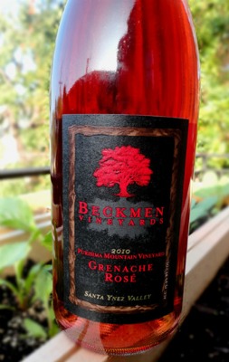 The exuberant, bright berry fruit, crisp acidity, and love of a light chill offered by a young Beaujolais - -with a lot of other flavors -- can be found in the 2010 Beckmen Vineyards Purisima Mountain Vineyard Grenache rosé.
