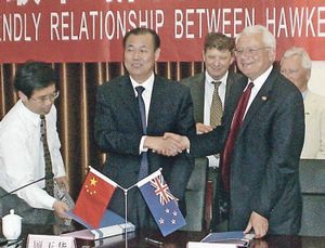 DEAL: Hawke's Bay Chamber of Commerce CEO Murray Douglas has arranged ongoing deals in China, helped by Xuzhou Chamber of Commerce president Gu Yuhua, during a recent trade delegation of business people and councillors from Hawke's Bay Regional and Napier City Councils. PHOTO/SUPPLIED