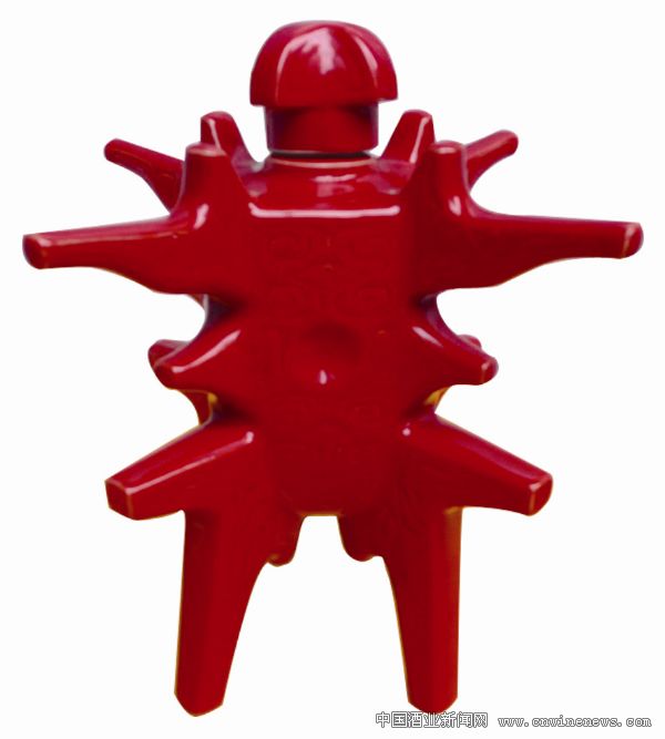 这个酒瓶通体红彤彤,古风扑面,无论是从造型或是釉色光泽来看,给人一种喜气洋洋心里暖的感觉,不由令人赞不绝口,拍手称奇。若不是商丘本地人,你就是拿着酒瓶把玩半天,也不一定能看出个子丑寅卯来;但它一旦进入本地人的眼里,几乎会无人不知晓这酒瓶独特形制中内蕴的含义。