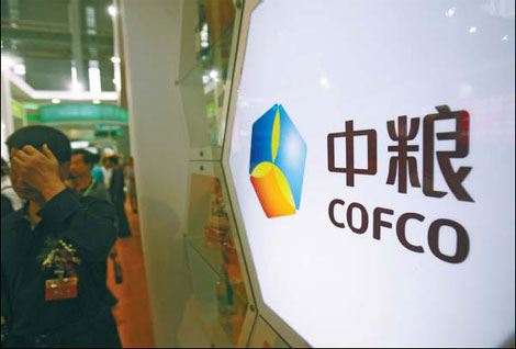 A China National Cereals, Oils and Foodstuffs Corporation (COFCO) booth at the 11th China International Exhibition for Grain and Oil Products, Equipment and Technology. COFCO will spend more than $10 billion on overseas mergers and acquisitions in the next five years. Zhang Peijian / For China Daily