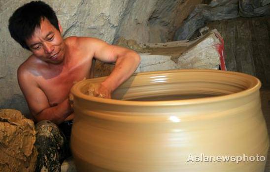 Only a few old local peasants can still make water vats. "This folk craft will be lost after my generation passes away," said an old peasant who earns around 2,000 yuan a month from such work.