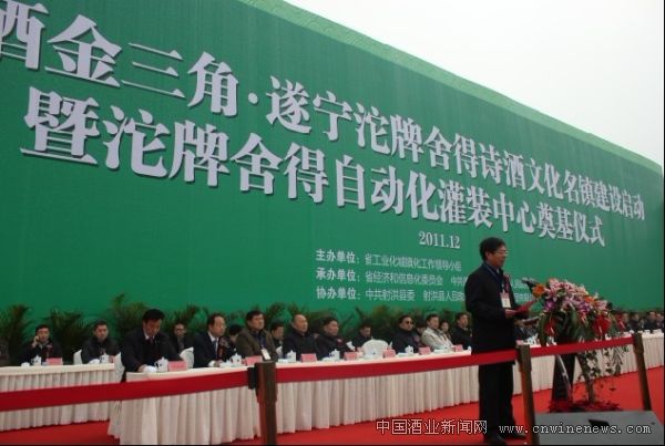 12月12日上午,沱牌舍得生态酿酒工业园洋溢着热烈的气氛,中国白酒金三角•遂宁沱牌舍得诗酒文化名镇建设启动暨沱牌舍得自动化灌装中心奠基仪式在这里隆重举行,省市县领导及嘉宾代表共同为自动化灌装中心奠基培土。该项目标志着沱牌舍得酒业进入新的发展阶段,向十二五目标迈出坚实大步。