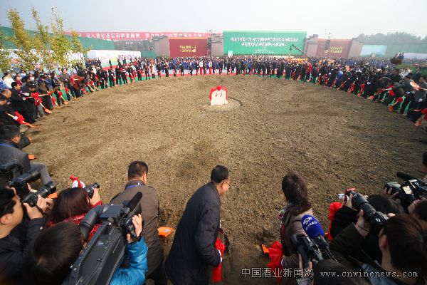 嘉宾代表来到沱牌舍得自动化灌装中心奠基坑前奠基培土