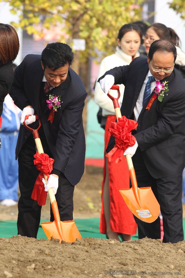 刘捷副省长带领嘉宾代表来到沱牌舍得自动化灌装中心奠基坑前,满怀希望与祝福,为沱牌舍得无限美好的未来奠基培土。