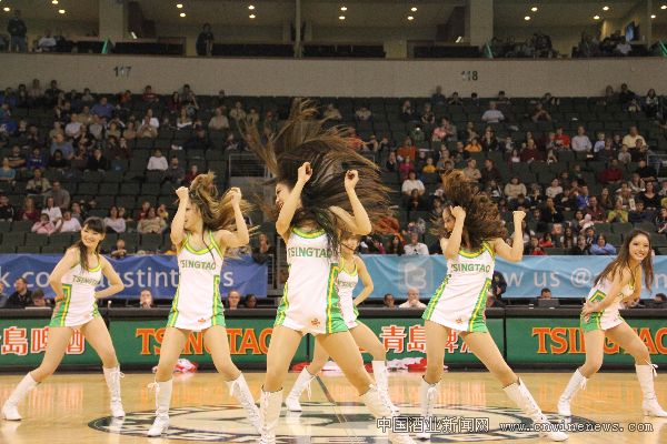 “这些可爱的中国女孩儿表现的很热情,她们每个人都有自己的特点,但在一起表演却很整齐,她们的表演很为今天的比赛添彩,她们应该和美国的啦啦舞队员同台表演。”美国观众JIM在看完中国啦啦宝贝表演后兴奋的表示到。当中国球迷还在庆祝马拉松式的NBA谈判结束的时候,2011青岛啤酒“炫舞激情”啦啦队选拔赛的6强选手已经悄然抵达奥斯汀,于美国当地时间12月18日下午15:30(北京时间 12月19日凌晨4:30)登上了奥斯汀的篮球赛场,用激情热舞带来了中国啦啦宝贝的热情和奔放,给寂寞的篮球赛事带来了一场“中国风味”的激情盛宴。