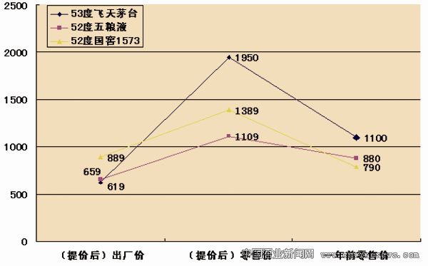 而近日,市场盛传,作为我国超高端白酒品牌之一的泸州老窖公司的国窖1573产品已开始提价,52度普通装国窖1573出厂价将将从635元/瓶上调至889元/瓶,其涨幅达到40%;而终端零售中的酒行、商超指导价则提高到1389元/瓶,此前多数地区的终端售价仅为959元/瓶。