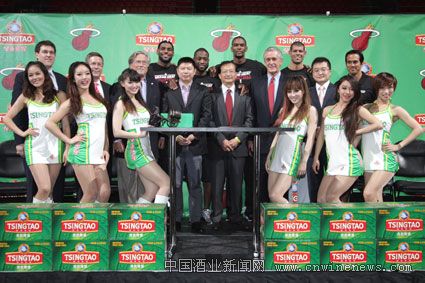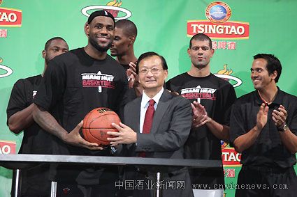 美国当地时间12月20日中午12:30(北京时间12月21日凌晨1:30),“青岛啤酒–迈阿密热火队战略合作签约仪式”在美国举行,迈阿密热火队老板阿里森、总裁莱利,热火“三巨头”小皇帝詹姆斯、闪电侠韦德、龙王波什以及著名球星巴蒂尔齐聚迈阿密美航球馆,青岛啤酒股份有限公司总裁孙明波出席了本次签约仪式。作为美国职业篮球联赛的夺冠热门球队,此次战略合作,是青岛啤酒继签约奥运会、与NBA合作、签约2012伦敦奥运中国冠军军团之后的又一力作,推动了与全球共享体育的激情与快乐。