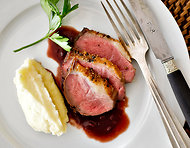 Peppered duck breast with red wine sauce