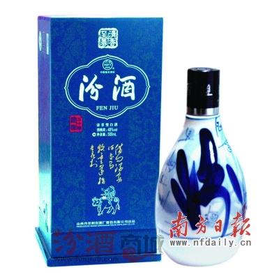 特点:该酒是20年前生产的汾酒特级原酒,以宜兴酒瓮盛装密封埋于地下,老熟20年后出瓮,经汾酒特色的精湛勾兑技术勾调。其酒液晶莹透亮,清香纯正,幽雅芳香,绵甜爽净,酒体丰满,回味悠长,是汾酒的“特中之特”,是清香型汾酒的顶级精品。其瓶身由被誉为“玲珑之子”的著名国际陶艺家王宗涛设计,采用中国传统青花瓷风格,以“汾”字为主体,写满各种字体的“酒”字,从汉字发展的角度阐释了汾酒的悠久历史。