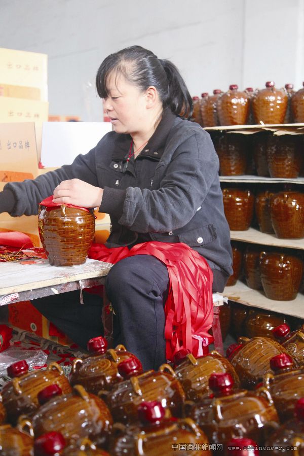 古法传承、手工酿造是浙江绍兴县唐宋酒业有限公司打造纯天然黄酒的一大法宝,尽管手工酿酒在人力、原料等方面成本较高,但保持了黄酒的自然风味,备受消费者喜爱。因此,多年来,唐宋酒业不惜代价,一直保持传统工艺酿酒,凭借高品质产品,迅速打开全国市场,成为中国黄酒业的一匹黑马,逐步成为黄酒一线品牌。图为岁末年初,员工们正在紧张地包装产品。