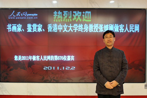 书画家、鉴赏家、香港中文大学终身教授张继刚做客人民网。(人民网记者 翁奇羽\摄)