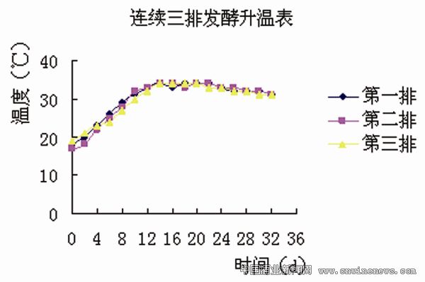 3.2.1 试样二连续三排入池后发酵升温情况,其表现情况参见见图2。