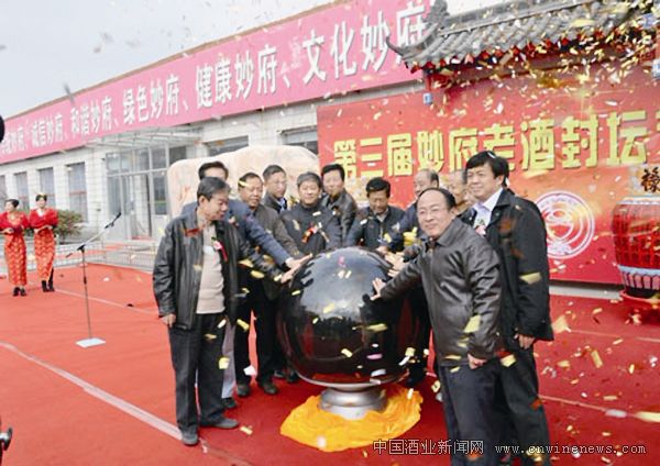 近日,第三届妙府老酒封坛节开幕式在山东即墨妙府老酒有限公司举行。国内酿酒专家代表及经销商、消费者代表近500人,分别在盛有陈年老酒的酒坛上签名,然后由厂家入库封存。