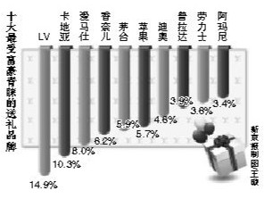 此外,胡润此次还首度发布了“十大最受富豪青睐的送礼品牌”,茅台也是榜上有名,位列第五。