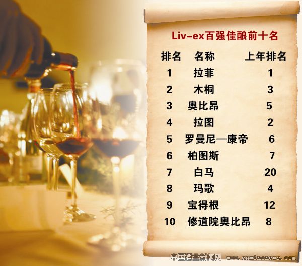 “Liv-ex百强佳酿”通过对过去一年间的佳酿价格、市场需