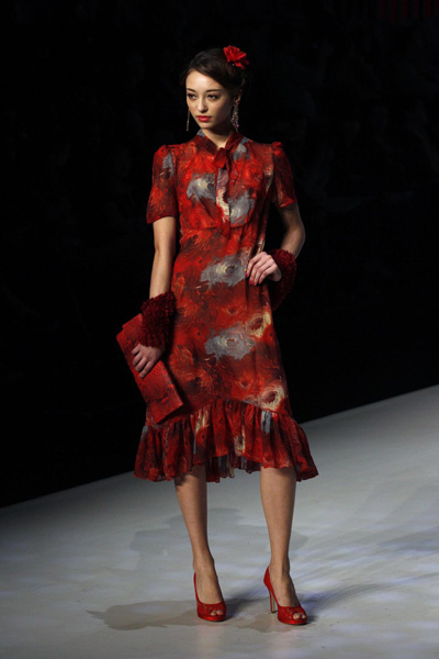 Models present creations by Hong Kong's designer Eliza Yeung as part of her Fall/Winter 2012 during Hong Kong Fashion Week Jan 18, 2012. Hong Kong Fashion Week, which lasts till January 19, features about 1,900 exhibitors from 26 countries and regions. [Photo/Agencies]