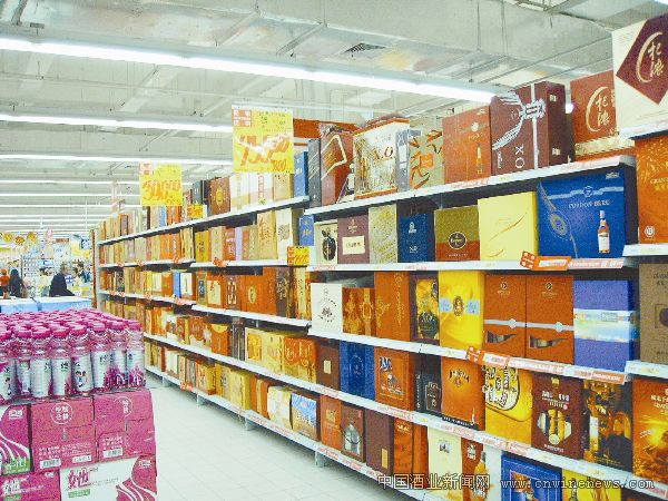 1月10日,《华夏酒报》记者来到沈阳市区内的家乐福、乐购、华润万家等超市,各商家都早早设置了春节酒品专区,各种酒类的买赠、降价等促销活动正进行得如火如荼。