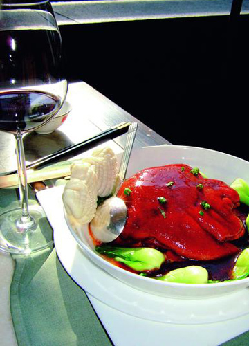 不管是北方的饺子面条,还是南方的烧麦蒸饺,到主食登场时,大家基本已经酒酣耳热了。但,这时葡萄酒的角色非但没有变轻,反而可能是引爆高潮的重点。选款既可干杯也可细细小酌的葡萄酒,红酒仍是重点,来款澳大利亚的Wol f Blass(禾富酒园)的Yel lowLabel(黄牌梅洛),轻描淡写,慢慢喝,感受她的高雅。口感较重的,可以试试贵气十足的Penfolds(奔富酒园)的Bin系列,感受粗犷雄厚又不失细腻的酒体。