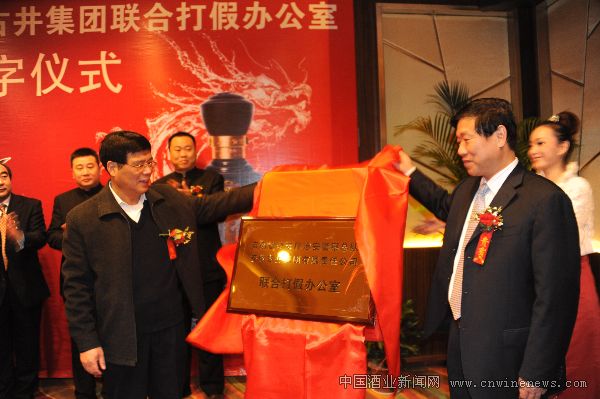 为进一步规范白酒市场发展,切实保护古井品牌和消费者的合法权益,促文章来源华夏酒报进古井集团跨越式发展,1月16日,安徽省公安厅与古井集团联合打假办公室成立揭牌暨签字仪式在合肥举行。图为安徽省公安厅副厅长周礼明和古井集团董事长、党委书记余林共同为打假办揭牌。