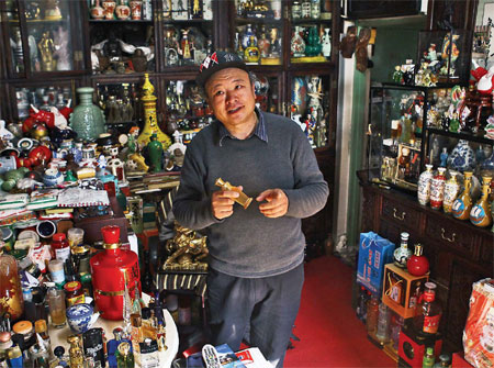 Cui Shaosong at his Beijing apartment, which houses a collection of more than 5,000 perfume bottles. Photos By Zou Hong / China Daily