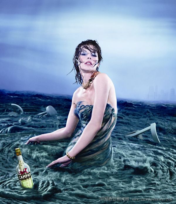 以“2012世纪末日”为主题的金巴利 (Campari)2012年度月历大片,将火山爆发、飓风来袭、大地龟裂、洪水席卷、闪电直击等带有末日情怀的阴暗主题一一呈现。米拉·乔沃维奇(Milla Jovovich)则化身为灾难中冷艳旁观的女神,手中的金巴利仿佛是她胜利的祭品。
