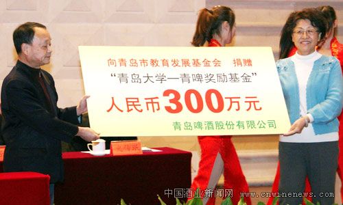 签署了“青岛啤酒育才奖学金”新三年捐助计划