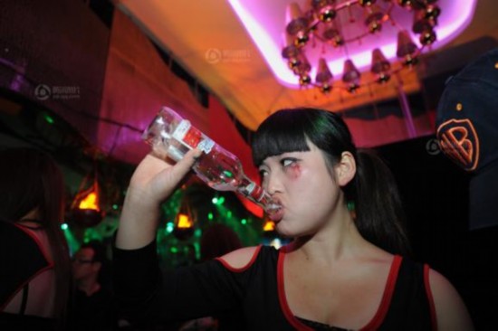 在夜店里,吧丽们不免划拳和抽烟。她们多数很被动,不过在她们看来这也是一种工作。