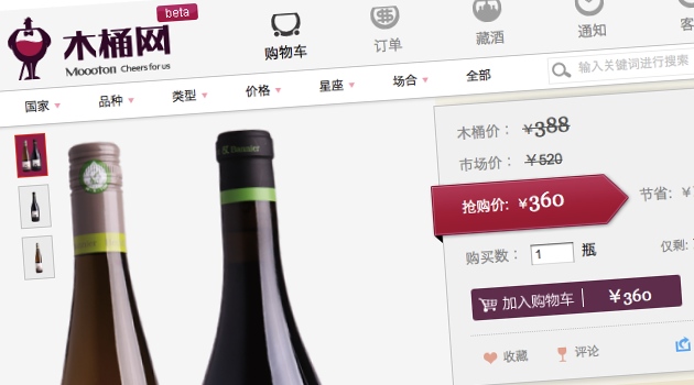 In vino lucror. If it’s a truth that China’s growing middle-classes have a great taste for wine, then profit will surely follow. And so a Beijing-based startup has this month launched a nice-looking specialist B2C e-commerce site selling foreign wines. The site, Moooton, adds in daily deals and some useful search presets to make it accessible and reasonably affordable.