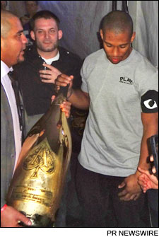 • For those of you Unfiltered readers just waking up from a coma, the New York Giants won the Super Bowl last weekend, defeating the New England Patriots in a highly anticipated rematch. And of course, Unfiltered is always interested to see what the champions celebrate with every time one of these children's games played by men concludes. This year the Giants made an interesting choice, but one Unfiltered can't fault, partying with newly single pop star Katy Perry, whose frequently changing hair was dyed a lovely shade of Giants blue. Of course, that party included Giants coaches and management, and the cool kids always sneak off to their own party for the good stuff, the cool kids being breakout star receiver Victor Cruz, retired Giants star Michael Strahan and hip-hop star Lil Jon, and the good stuff being a Nebuchadnezzar of Armand de Brignac "Ace of Spades" Champagne. The 15-liter bottle, priced at $100,000, was presented to Cruz in celebration of the Giants' victory at an Indianapolis pop-up version of New York's club Greenhouse. For Cruz, who barely makes the NFL minimum for second-year players, that bottle amounts to a quarter of his annual salary. Unfiltered wonders if he'd have maybe just preferred a raise after scoring the team's first touchdown Sunday and salsa-ing his way into America's hearts.