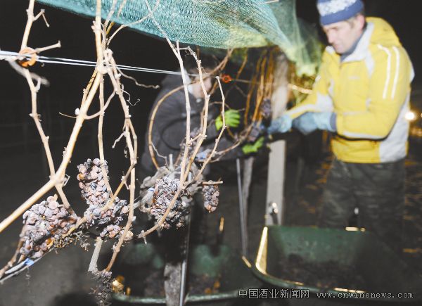 入冬以来,奥地利东部布尔根兰州伊尔米茨的酒庄老板威利·欧皮兹一直在关注天气情况,等待采摘冰葡萄的时机。 2月1日晚,葡萄园的温度保持在-7℃以下,欧皮兹先生约好采摘工人,连夜收获冰葡萄并榨汁储存,准备酿造冰酒。今年的冰葡萄由于暖冬收获较晚,欧皮兹先生的收获虽然减少了4成,但冰葡萄的糖分将更加集中,冰酒的品质将好过往年。冰酒在奥地利有超过100年的酿造历文章来源华夏酒报史,采用结冰的葡萄酿造,口味甜润,是品质较高的餐后酒。