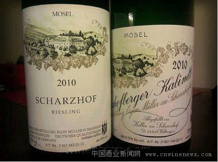 伊贡-米勒酒庄位于维庭根村(Wiltingen)附近一座名叫沙祖堡(Scharzhofberg)的小山上,总面积仅12.5公顷。虽然顶级的TBA出厂尽为业内人士或企业巨子收藏,仅在拍卖市场可能得到,但是伊贡-米勒酒庄同时也出品其他级别的葡萄酒,晚收级葡萄酒年产3万瓶,逐粒精选级葡萄酒(Beerenauslese)约1万瓶,价钱虽比同等级酒贵一倍以上,却不会超过100欧元,作为新年礼物,甜甜蜜蜜,非常合适。