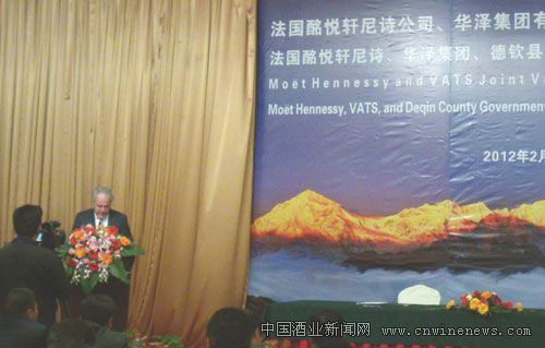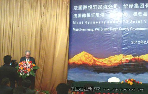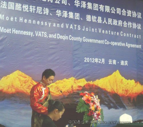 云南省迪庆州委书记张登亮及德钦县党政领导见证了本次签约,法国酩悦轩尼诗集团总裁克里斯托夫•纳瓦尔与华泽集团董事长出席了签约仪式并共同签署了合资协议。