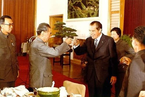 IN the grand hall of Shanghai's Jinjiang hotel, the picture of former American President Richard Nixon toasting with former Premier Zhou Enlai portrays the significance of that moment.