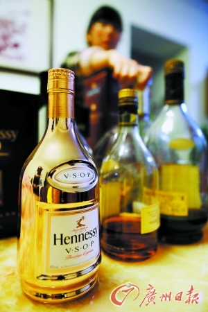 市场走访:天河区东圃某酒行徐先生说,高档洋酒瓶回收商“百分百就是卖给造假的”。滨江东路一间废品回收站3斤装的轩尼诗XO酒瓶回收价是80元,1.4斤装的是50元。