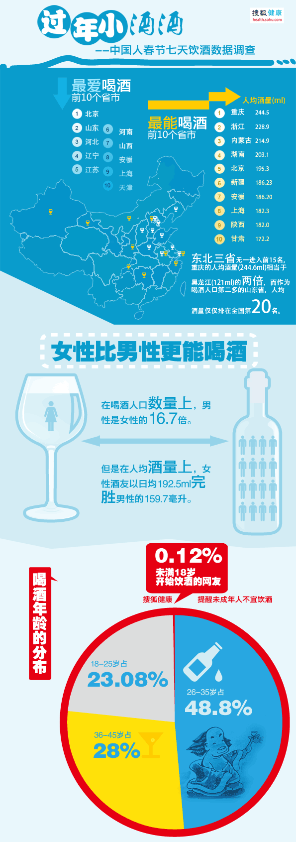 While northeastern natives have a reputation as big drinkers, none of the three northeast provinces, Heilongjiang, Jilin and Liaoning, featured in the top 15.