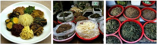 正月十五又是吃五谷饭和干菜的日子。五谷饭是用糯米、高粱米、红小豆、黄米、黑豆等杂粮混合到一起做成的饭。吃五谷饭也是为了在谷物减少的冬天补充营养,寄托对健康和丰收的希望。与五谷饭一起吃的干菜是用前一年秋天晾干存起来的茄子干、南瓜干、萝卜叶、山野菜等做成的。据说正月十五吃干菜可以一年不中暑,同时也是为了调理胃口。