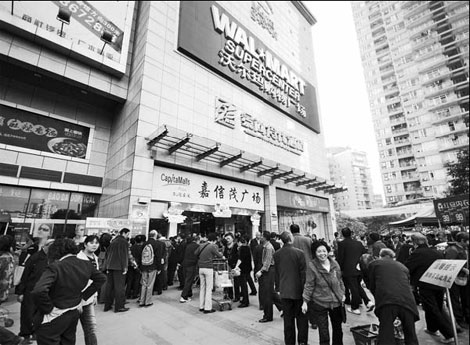 The entrance of a Wal-Mart China Supercenter in Chongqing. At present, the retailer had more than 370 stores in 140 cities on the Chinese mainland. Zhong Guilin / For China Daily