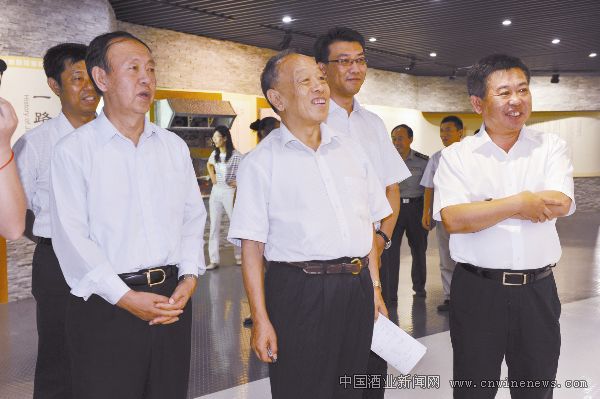 2011年8月11日,全国人大外事委员会主任委员李肇星(中)参观景芝酒之城。