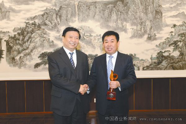 山东省省长姜大明(左)为山东景芝酒业股份有限公司董事长刘全平颁发省长质量奖。