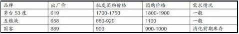 短期名酒价格体系下降,反映 1000元以上价位白酒需求不足