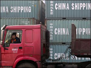 A truck driver waits to unload his cargo at the port in Tangshan, China. A growing taste for meat has sparked a surge of U.S. exports of soybeans for livestock feed.