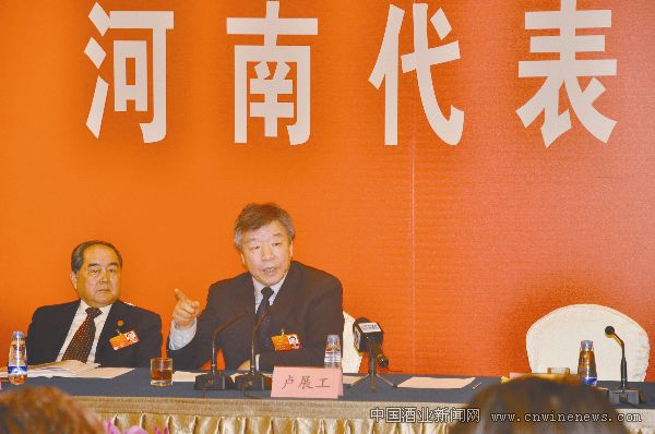 在今年全国两会河南代表团的对外开放日,全国人大代表、河南省委书记卢展工连续第三年向海内外推介杜康酒。