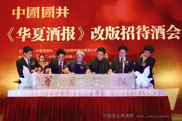 色泽深红的葡萄酒,缓缓地从瓶里淌出,注入晶莹剔透的冰雕之中。随着芬芳优雅的酒香弥漫,“华夏酒报”四个字也越来越清晰地浮现出来,感动、诚挚、温馨的笑容洋溢在每个人脸上。