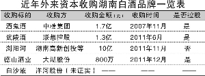 与此同时,超过15亿元的业外资本正砸向湖南,对有历史积淀的湘酒品牌进行“扫货式”收购。湖南省政府出台文件,首次明确要求扶持白酒业,计划到2015年培育销售额超30亿元、20亿元龙头酒企各1家,至少2家湖南酒企将谋求2015年前上市。此外,多个10万吨级的酿酒基地正在兴建并陆续投入使用,2015年湖南白酒产能将是目前的3倍。