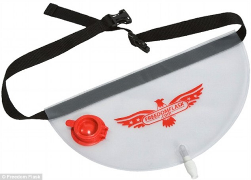 这种“搞怪”倒酒方法由美国佐治亚大学的研究生研制,“自由瓶”可用皮带捆在内裤上,是“狂野男士”梦寐以求的装备。卖家在网上宣传称,仅需24.95美元(约合157元),你就可以“随地饮酒”,包括在“音乐厅、节日欢庆场所、酒吧、俱乐部”,以及“高尔夫球课上、电影院里甚至是在滑雪场”,当然也包括“无聊的办公室”。