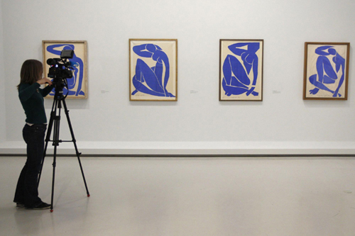 A camerawoman films the paintings "Nu Bleu I a IV" (Nude Blue I to IV) by French painter Henri Matisse, who lived from 1869 to 1954, during the press presentation of the exhibition "Matisse, Paires and Series" at the Centre Pompidou modern art museum in Paris March 5, 2012. The exhibition will run from March 7 to June 18, 2012.[Photo/Agencies]